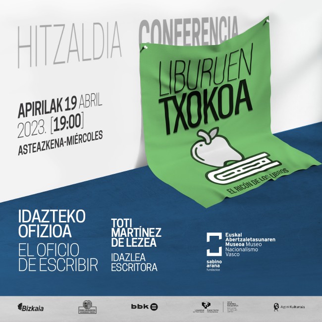 La escritora Toti Martínez de Lezea abrirá el próximo 19 de abril, miércoles, a partir de las 19:00 horas, en Sabino Arana Fundazioa, el nuevo ciclo de conferencias “El rincón de los libros”, organizado desde el Museo del Nacionalismo Vasco.