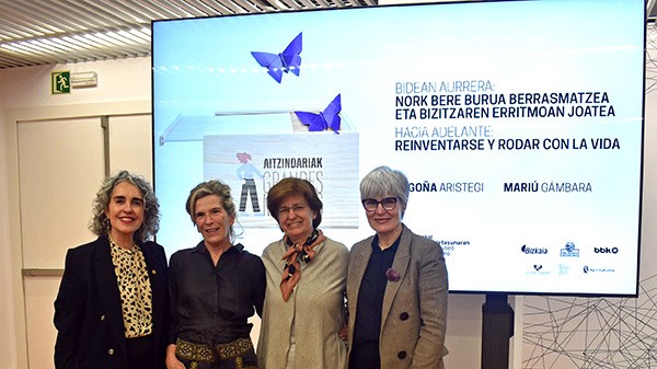 Dentro del ciclo Aitzindariak / Grandes Mujeres, el Museo del Nacionalismo Vasco acogió la conferencia Bidean aurrera: nork bere burua berrasmatzea eta bizitzaren erritmoan joatea / Hacia adelante: reinventarse y rodar con la vida, a cargo de Begoña Aristegi y Mariú Gámbarara.